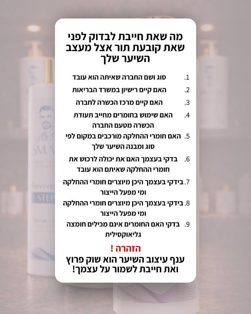 שאלה מצוינת. הטיפול הזה אינו מבוסס על מוצר מדף שמתאים לכולם – אלא על התאמה והרכבה אישית ומדויקת. אנחנו מתחילים באבחון מעמיק של סוג השיער ולאחר תיאום ציפיות נרכיב עבורך במקום פורמולה ייחודית שמתאימה רק לסוג השיער שלך. זו בדיוק הסיבה שלמעלה מ־3,500 נשים כבר הצליחו לראות שינוי אמיתי אחרי אין-ספור ניסיונות כושלים.